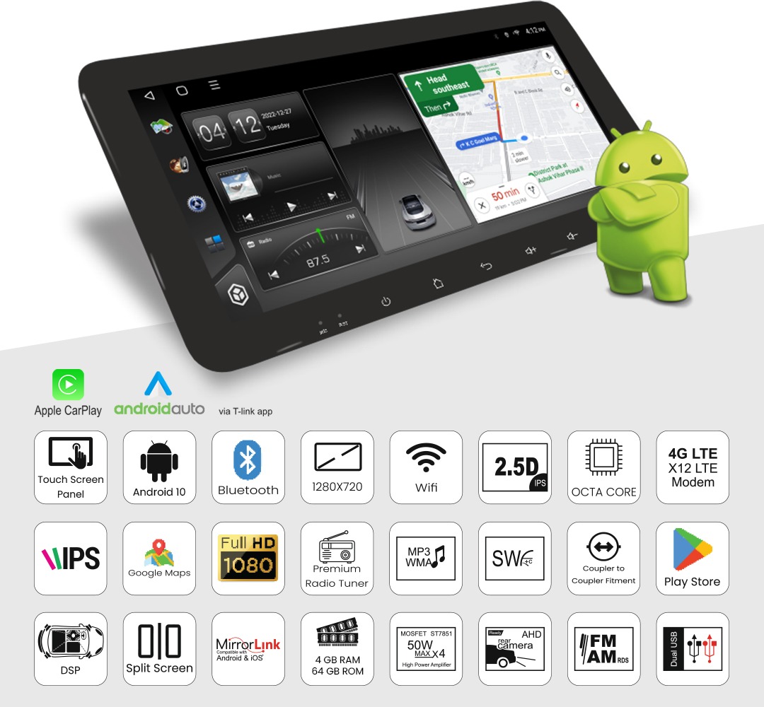 This stereo isn’t just about size—it’s about smart functionality, modern design, and exceptional performance. With a gorgeous 10.33-inch floating screen, wireless smartphone connectivity, and a powerful octa-core engine under the hood, the T0348W offers a perfect balance between form and function.