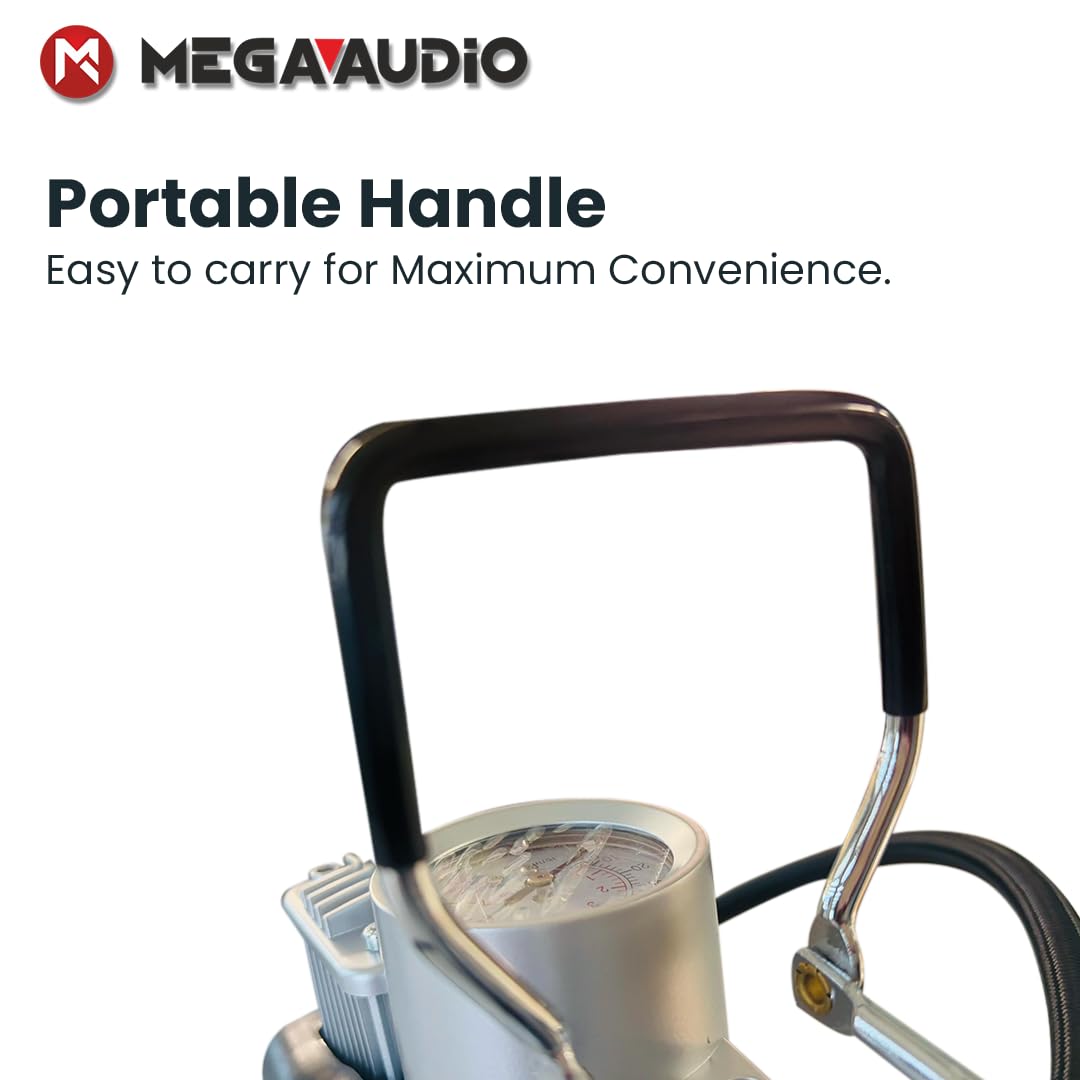 - 🌱 Eco-Friendly and Cost-Effective: By maintaining proper tire pressure, the Mega Audio Portable Tyre Inflator helps improve fuel efficiency, reduce tire wear, and lower your carbon footprint. It’s an eco-friendly and cost-effective way to keep your vehicle running smoothly.