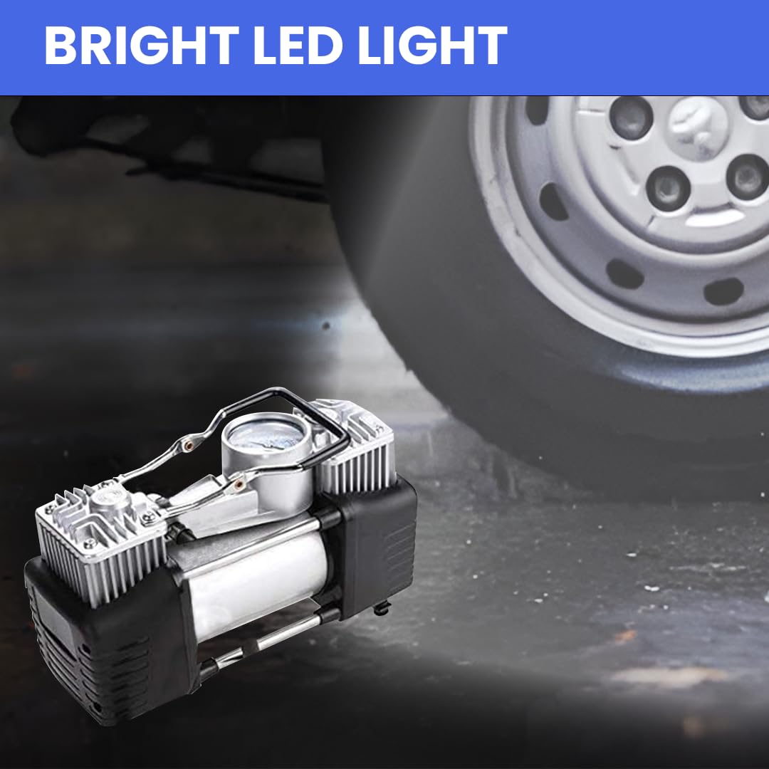 - 💡 Built-in Light: Featuring a bright and energy-efficient LED light, this air compressor provides exceptional visibility in dark or low-light environments, making it an indispensable tool for nighttime emergencies, camping trips, or roadside tire repairs.