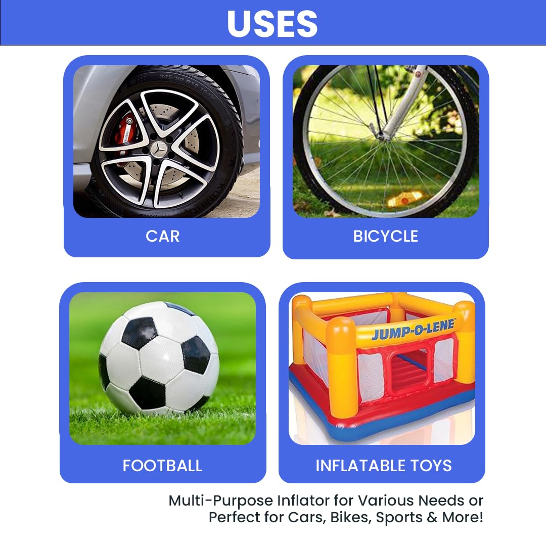 - 🚗 Pressure Inspection: The advanced built-in pressure gauge ensures precise and accurate pressure monitoring, allowing you to achieve the perfect inflation level for your car tires, bike tires, sports balls, or inflatables with complete confidence and ease.