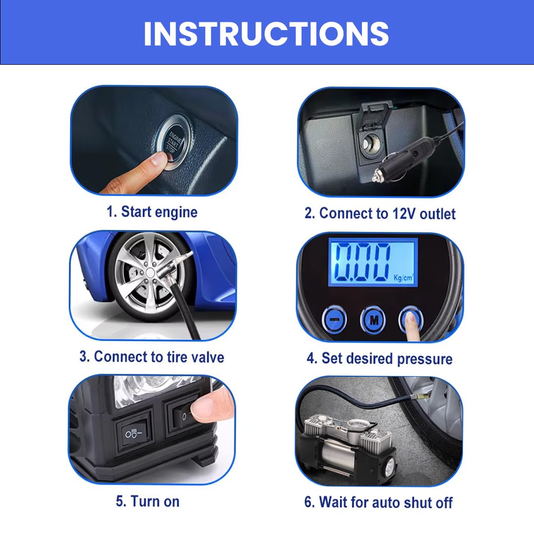 - ⚙️ Metal Motor: Constructed with a high-performance metal motor, this air compressor is engineered to deliver unmatched durability, reliability, and long-lasting power, ensuring it can handle even the most demanding inflation tasks with ease.