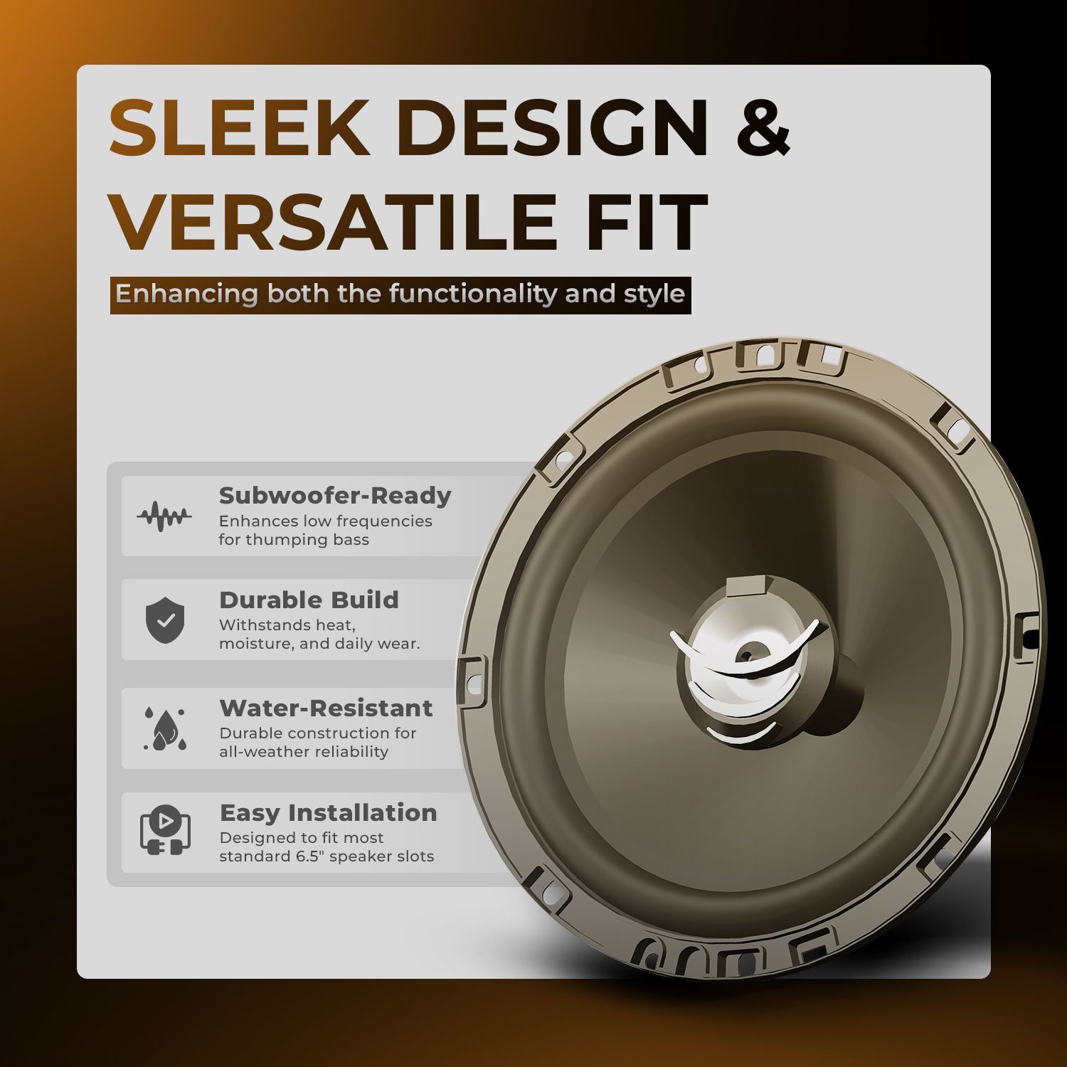- 6.5-Inch Coaxial 2-Way Speaker: The 16.5cm cone and 3.5cm tweeter work together to deliver rich, full-range sound with a smooth transition from low to high frequencies.