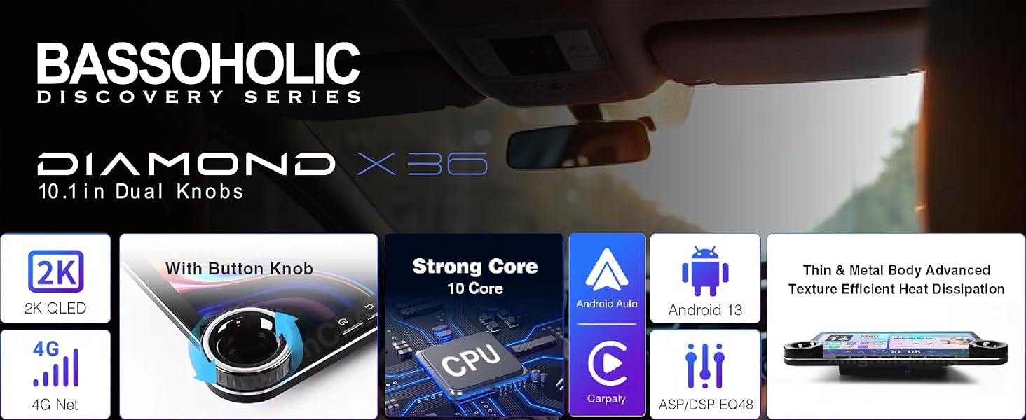 - 10.1 ” 2K IPS Touch Display:-Enjoy an immersive visual experience with the BASSOHOLIC Diamond Android Player’s 10.1-inch IPS display featuring a sharp 2560x1440p 2K resolution. The high pixel density delivers lifelike visuals, crisp text, and brilliant colors, making everything from navigation to video playback exceptionally clear. IPS technology ensures wide viewing angles, so content remains vivid and legible even from the side.