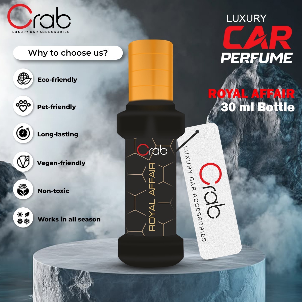 Luxury should never come at the price of safety. Car Perfume Royal Affair is crafted using premium, non-toxic, and eco-friendly ingredients. It is safe for use around children and pets and free from harsh chemicals and allergens typically found in generic air fresheners. You can breathe easy knowing you’ve chosen a product that cares for your well-being as much as it cares for your driving experience.