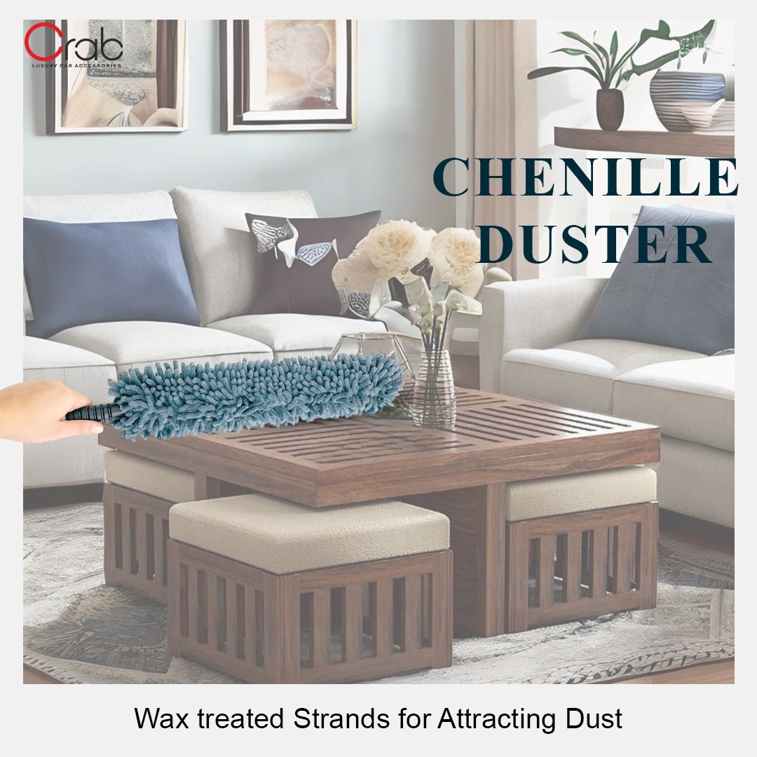Whether you’re dusting your furniture, blinds, electronics, or car, the Crab Chenille Duster is perfect for cleaning all surfaces. The chenille fibers are gentle, ensuring no scratches or damage to sensitive items while effectively picking up dust and debris.