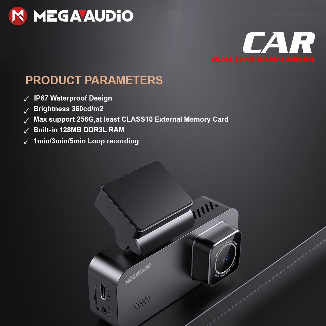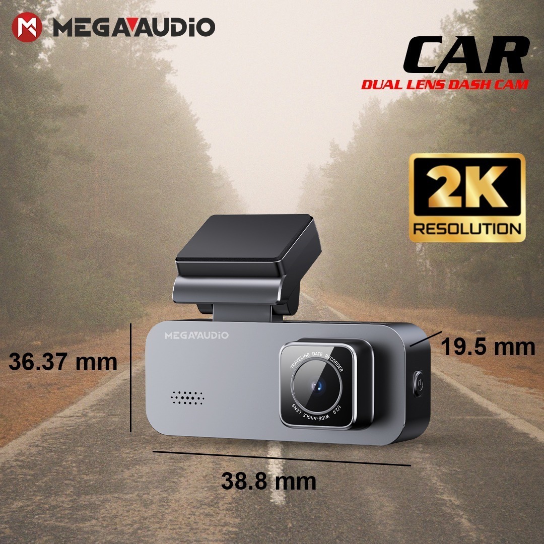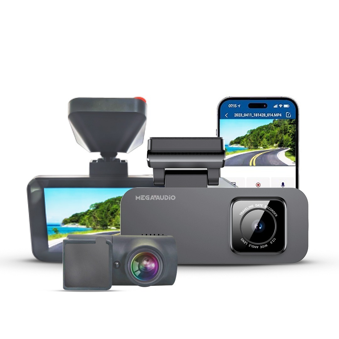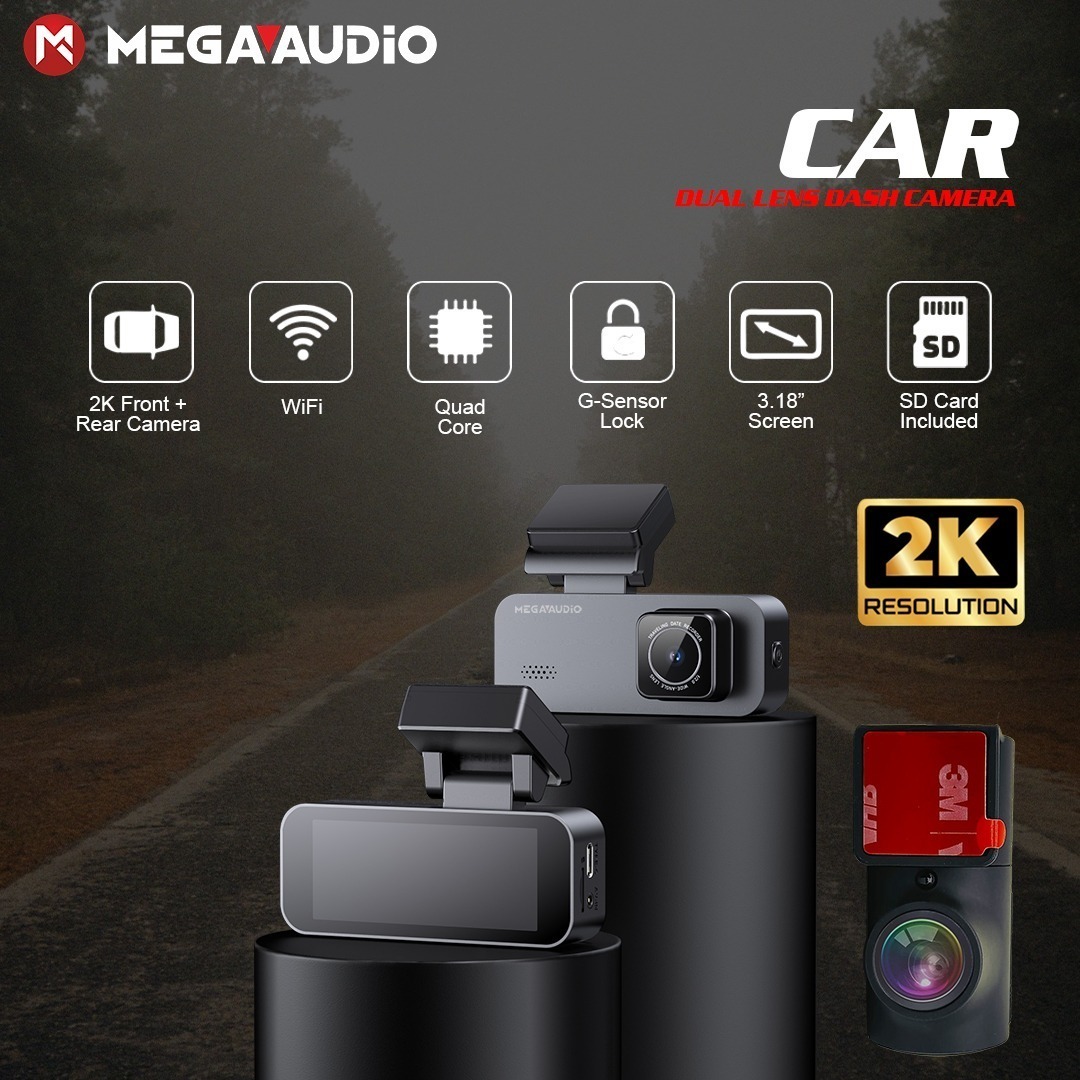 MEGAAUDIO MADVR06 Dual Lens Dash Cam | 3.18″ IPS Touchscreen | 2K 1440P Front & 1080P Rear | WiFi | G-Sensor | Enhanced Night Vision | Loop Recording | IP67 Waterproof | 32GB TF Card Included