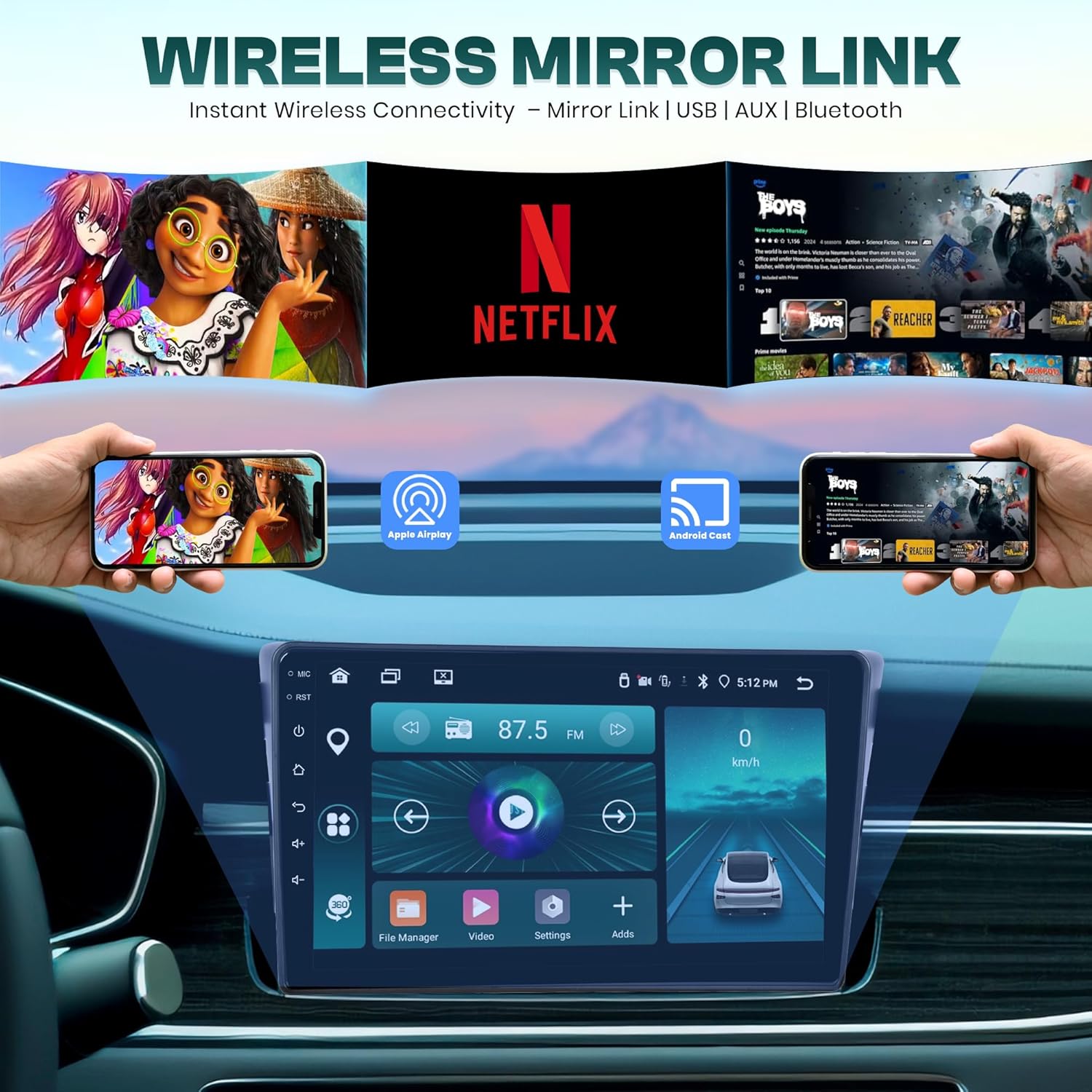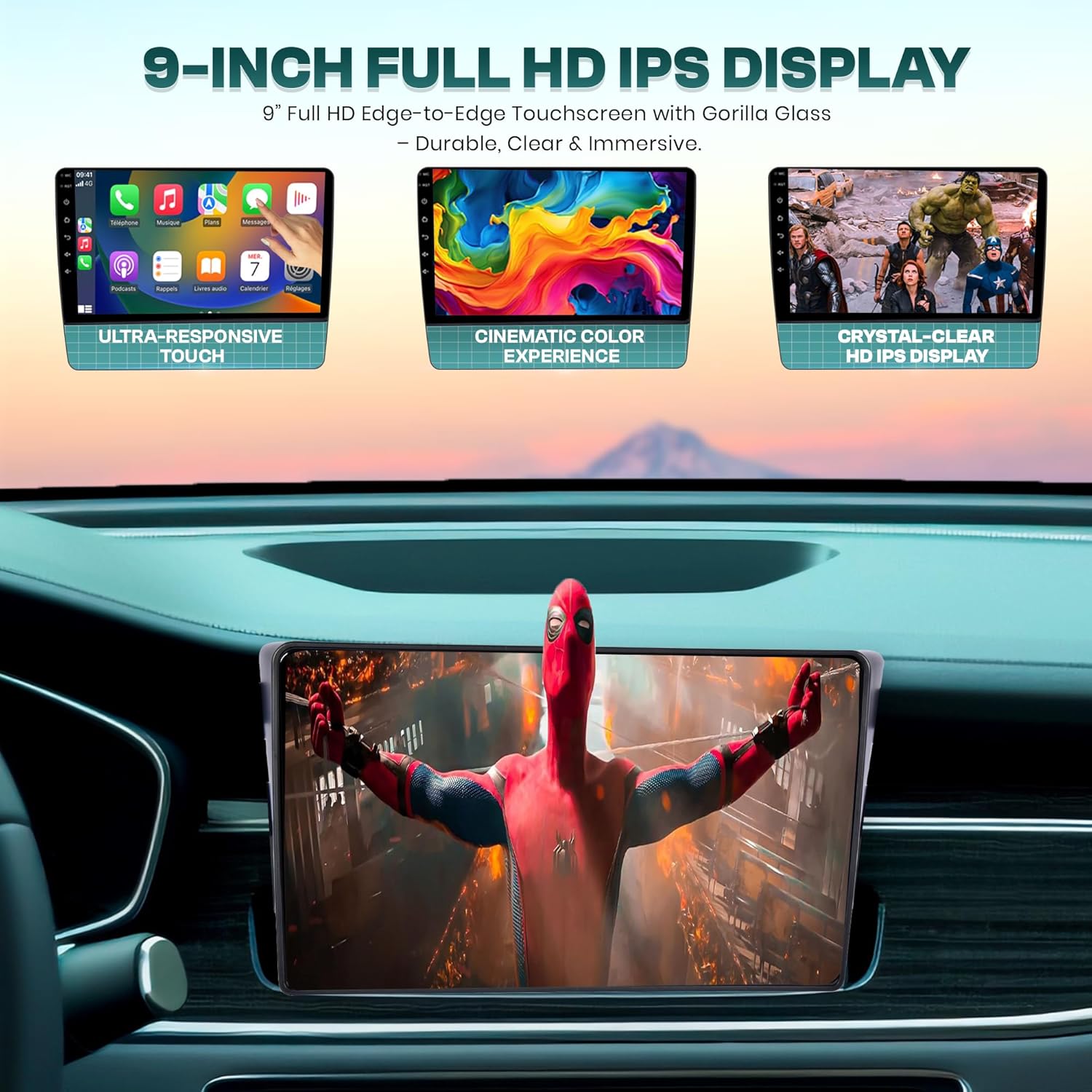 - 𝐈𝐦𝐦𝐞𝐫𝐬𝐢𝐯𝐞 𝟗-𝐈𝐧𝐜𝐡 𝐈𝐏𝐒 𝐓𝐨𝐮𝐜𝐡𝐬𝐜𝐫𝐞𝐞𝐧 𝐃𝐢𝐬𝐩𝐥𝐚𝐲:-Featuring a large 9-inch IPS screen with vibrant colors and wide viewing angles, this high-resolution touchscreen provides a premium visual experience for maps, media, and controls. Its ultra-responsive touch capability ensures seamless navigation and ease of use, even while on the move.