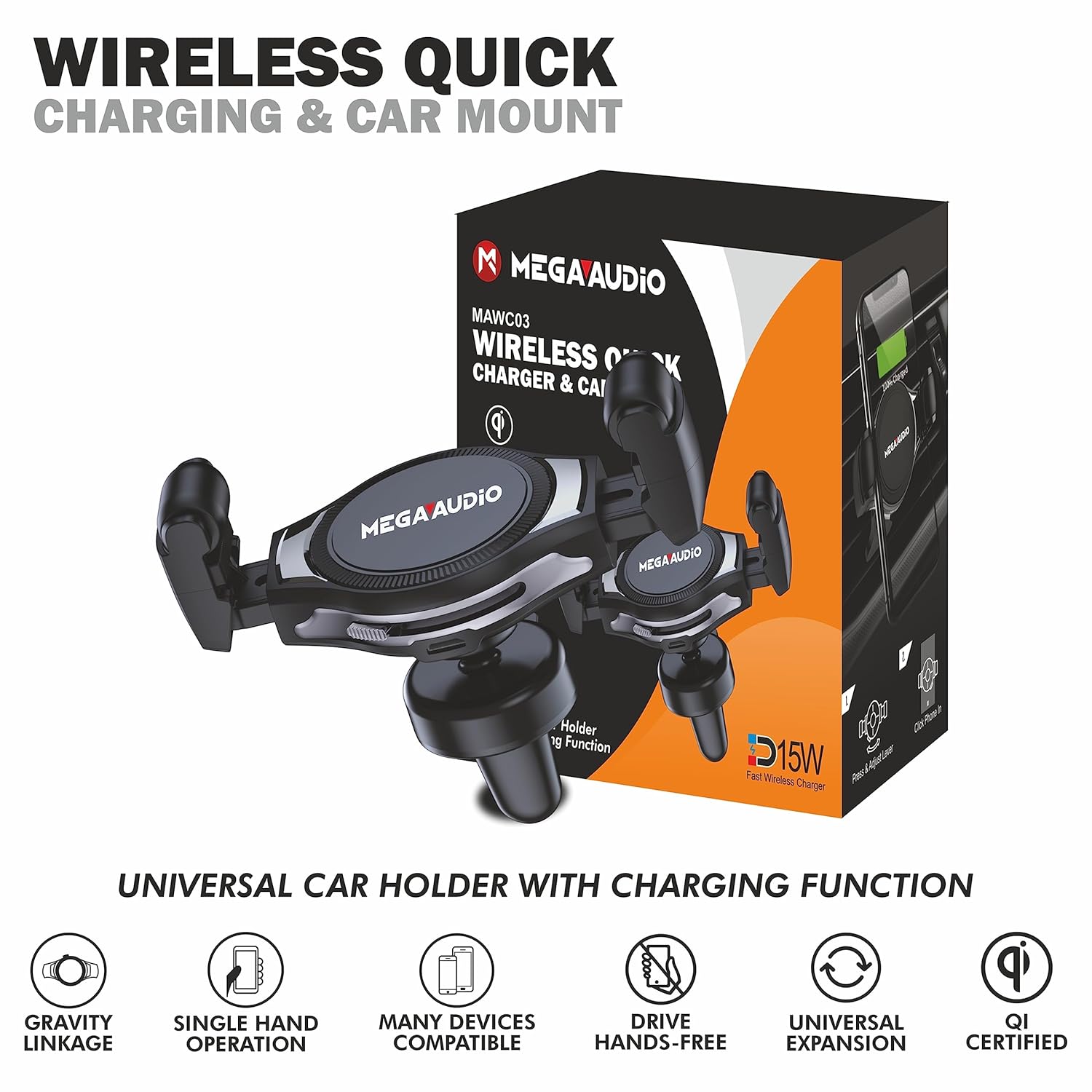 ⚡ This Universal Car Holder combines the functionality of a phone mount with the added benefit of wireless charging. With its 15W fast wireless charging capability, it ensures rapid and efficient charging for Qi-compatible devices.